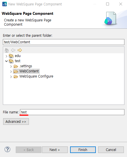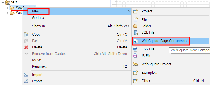 ① WebContent 폴더에 오른쪽 마우스 > New > WebSquare Page Component
