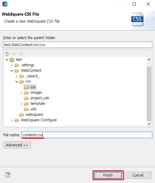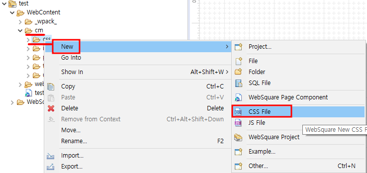 ① WebContent\cm\css에 오른쪽 마우스 클릭 > New > CSS File