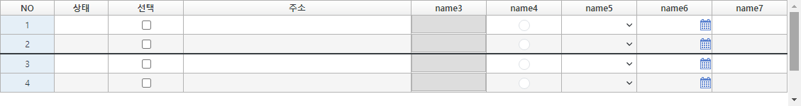 - rowstatusVisible을 true로 설정하여 수정 상태 아이콘 표시(rownum과 rowstatus의 위치는 서로 변경 불가능함)