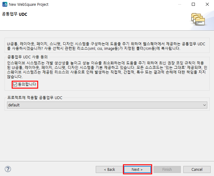 ③ 공동업무 UDC 동의합니다 체크 후 Next > Preview에서 Finish