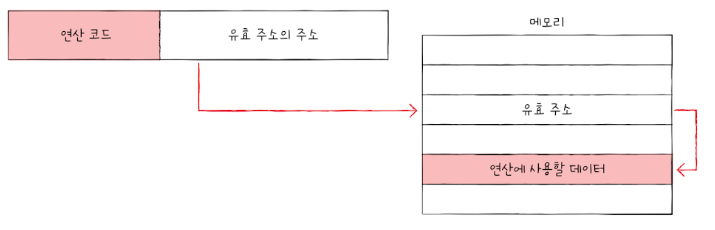 - 유효 주소의 주소를 오퍼랜드 필드에 명시