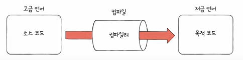 - 컴파일 언어로 작성된 소스 코드는 컴파일러에 의해 저급 언어로 변환(컴파일)되고, 컴파일의 결과로 저급 언어인 목적 코드가 생성됨