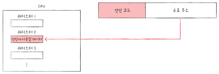 - 유효 주소 : 연산 코드에 사용할 데이터가 저장된 위치